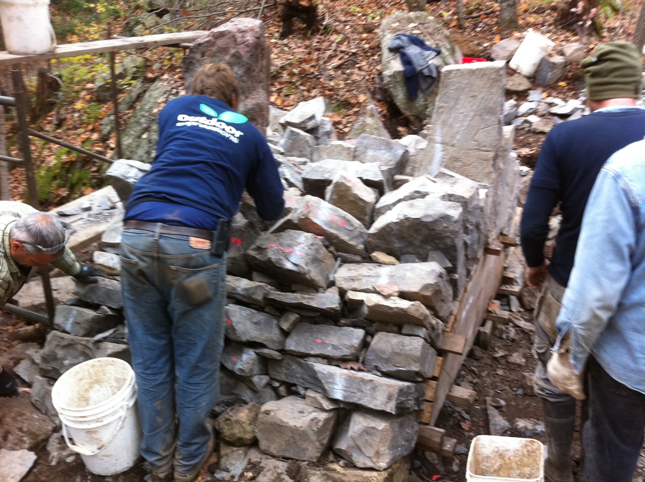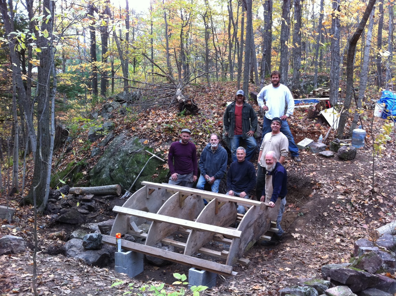 Yesterday we put all the stones up on the bridge form and completed the arch vault. We all felt exhilarated to be over the hump and a bit tired too but none of us even the older guys felt over the hill.